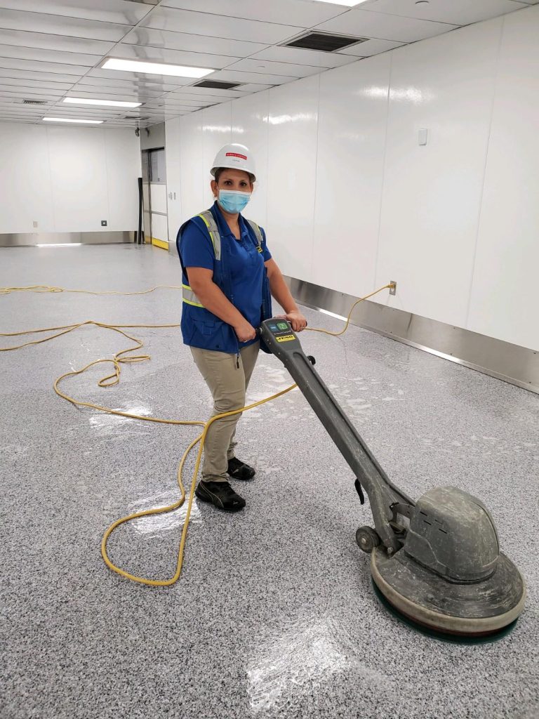 - Floor machine buffing